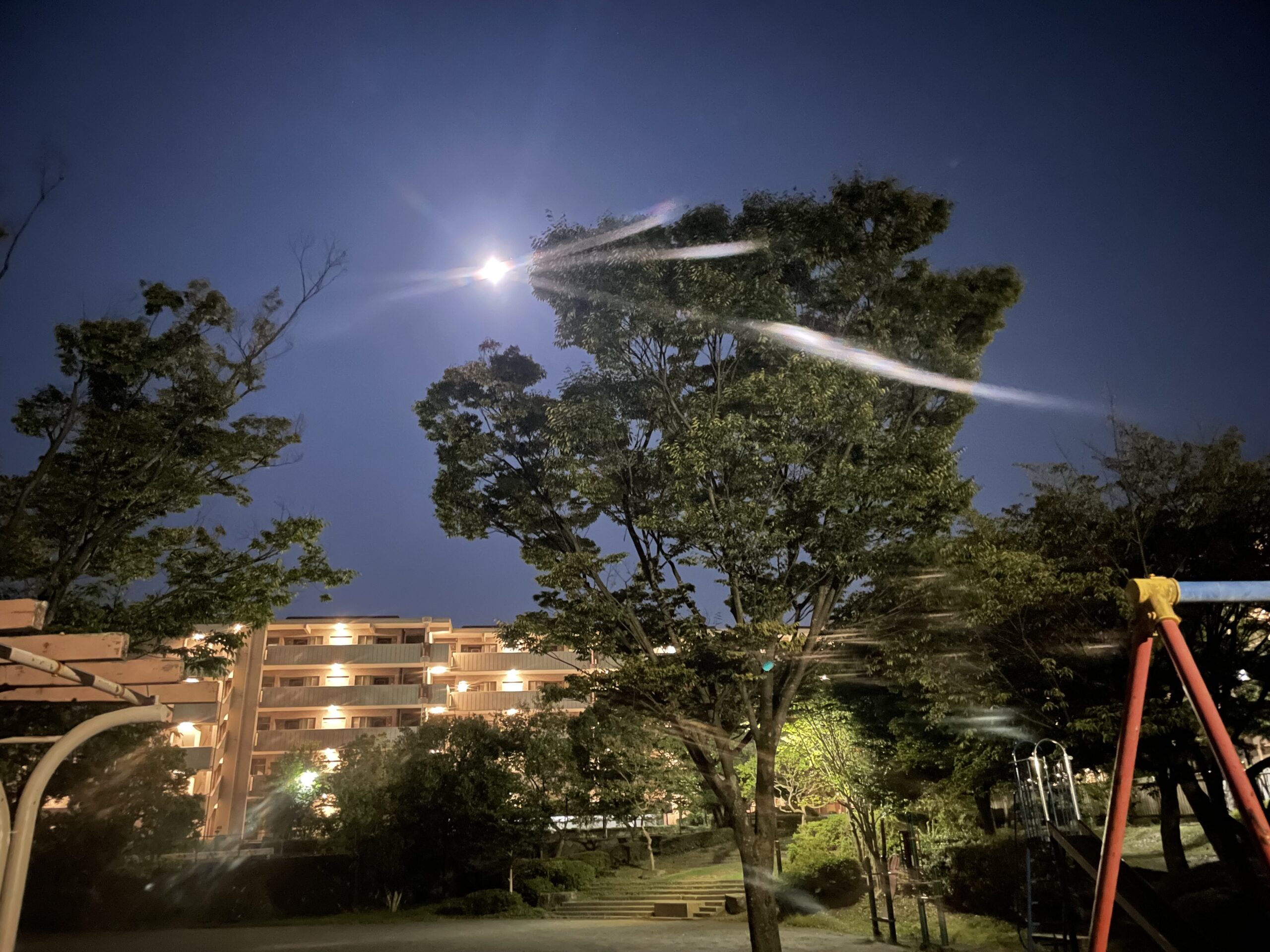 9月17日。中秋の名月がサザンヒルズの上空に輝いて、建物や烏森公園を照らしています。毎日35°Cを越えるような猛暑が続いてきたこの夏でしたが、今宵、月が建物の上の方に仰ぐこの時刻になると、公園を吹き抜ける涼やかな秋風にのって、あちらこちら、足下から秋の虫の合唱が聞こえています。